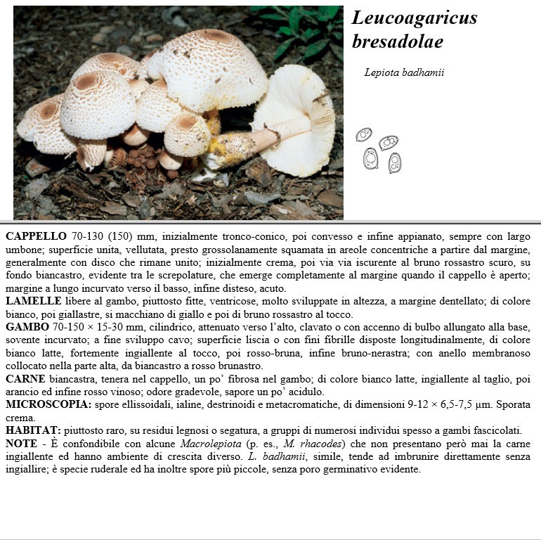 NOTE - E confondibile con alcune Macrolepiota (M. rhacodes) che non presentano però mai la carne ingiallente ed hanno ambiente di crescita diverso. L. badhamii, simile, tende ad imbrunire direttamente senza ingiallire, è specie ruderale ed ha inoltre spore più piccole, senza poro germinativo evidente.