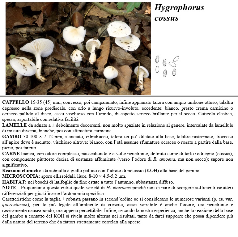 NOTE - Proponiamo questa entità quale varietà di H. eburneus poiché non ci pare di scorgere sufficienti caratteri differenziali per giustificarne l'autonomia specifica. Caratteristiche come la taglia più o meno robusta passano in second'ordine se si considerano le numerose varianti (p. es. var. quercetorum), per lo più legate all'ambiente di crescita, assai variabile è anche l'odore, ora penetrante e decisamente nauseabondo, ora appena percettibile. Infine, secondo la nostra esperienza, anche la reazione della base del gambo a contatto del KOH si rivela molto alterna nei risultati, tanto da farci supporre che possa dipendere più dalla natura del terreno che da fattori strettamente correlati alla specie.